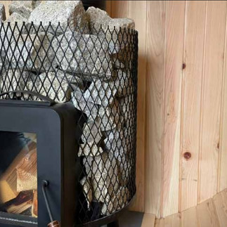 宿の庭に設置されたプライベートサウナ。こちらは本場フィンランドの信頼のメーカー「HARUVIA」の電気ストーブを入れています。カップルやご夫婦、お友だちと気兼ねなく入れるのが魅力。サウナの後は宿でまったりと過ごせ、ディープリラックスな1日に。